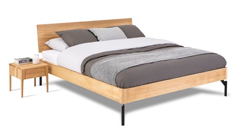 Heerlijk houten bed, hoge ligging , en je kunt er makkelijk onder met stofzuiger.