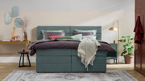 Opbergboxspring Pearl vlak met gestoffeerd matras, niagara