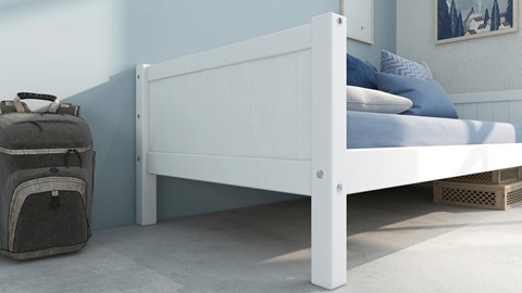 Heel fijn bed. Hebben er 2 voor onze dochters. Heel stevig, makkelijk te bevestigen. Advies is om goede (voor volwassenen) lattenbodem te kopen en deze vast te schroeven