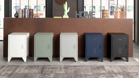 Geef de (kinder)kamer een industriële touch met dit metalen nachtkastje Bronxx. Dankzij het robuuste ontwerp en de afwerking in verschillende kleuren past deze nachttafel perfect in zowel een stoere kinderkamer als een trendy tienerkamer.